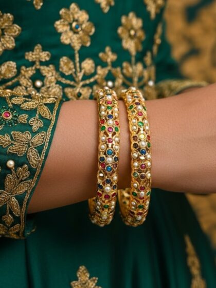 Azka Jadau bangles(Red-Green)