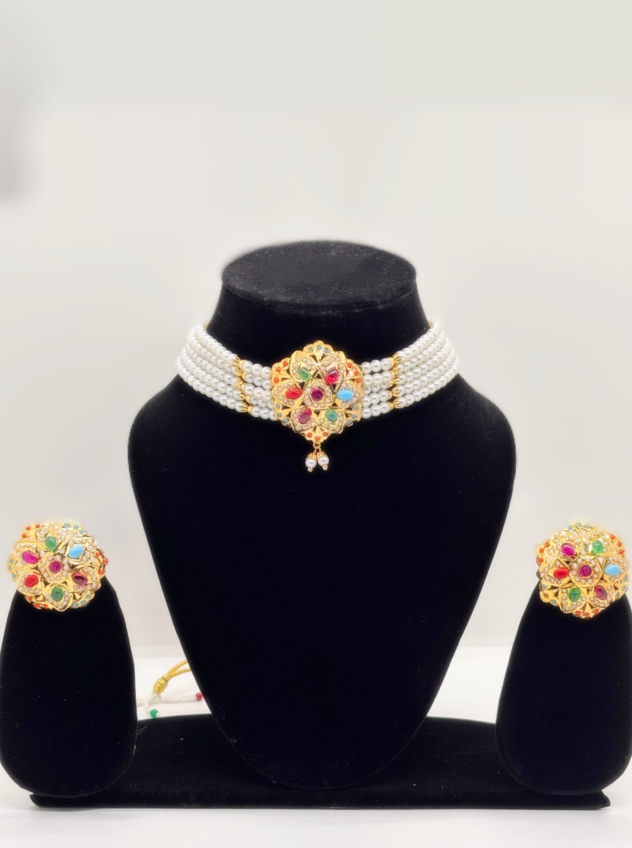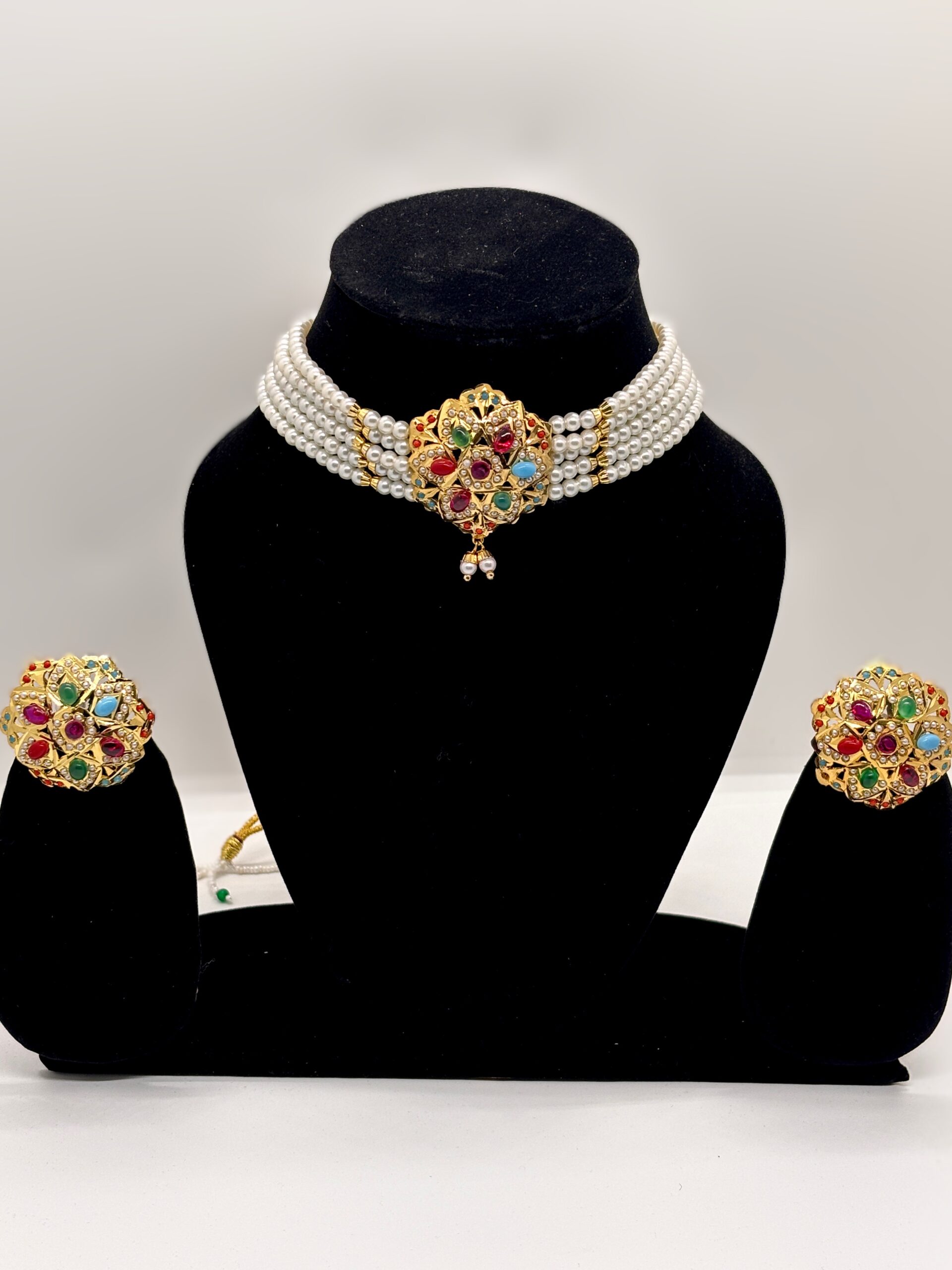 • Timeless Artistry: Features a handcrafted Jadau Choker paired with matching stud earrings for a complete, regal look.