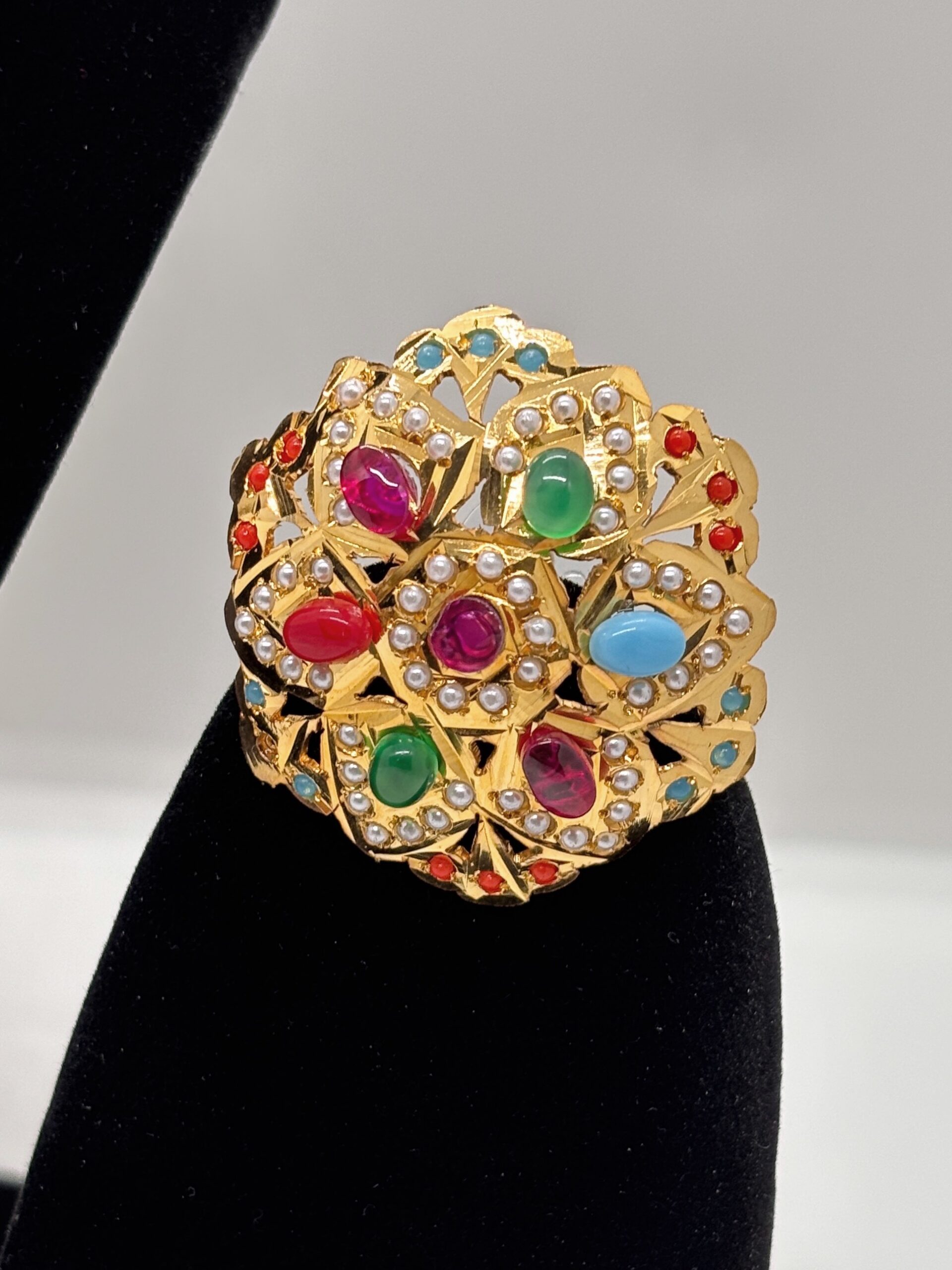 • Vibrant Stones: Adorned with premium multicolor semi-precious stones, offering a versatile palette that complements any outfit.