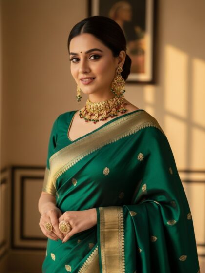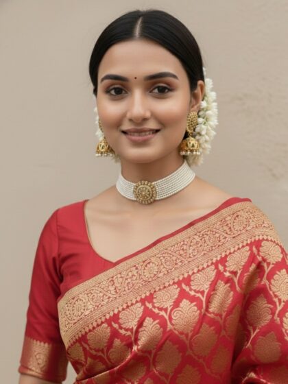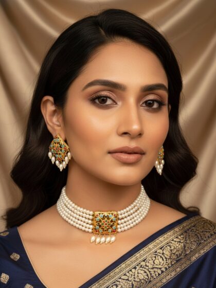 Paired with matching statement studs, this set exudes regal charm and sophistication. Perfect for brides, festive occasions, and heritage celebrations, it elevates both traditional and contemporary ensembles with effortless luxury.